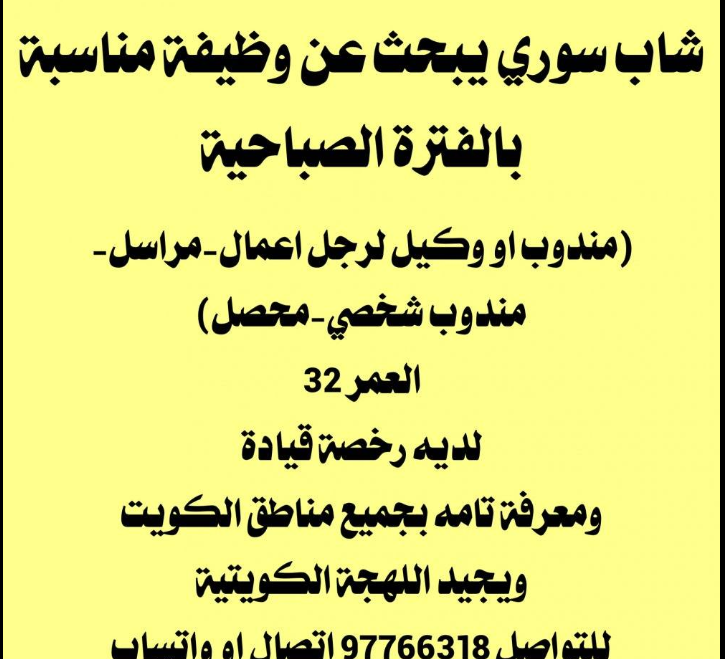 يمني عندي سيارة ابحث عن عمل توصيل داخل الجهراء