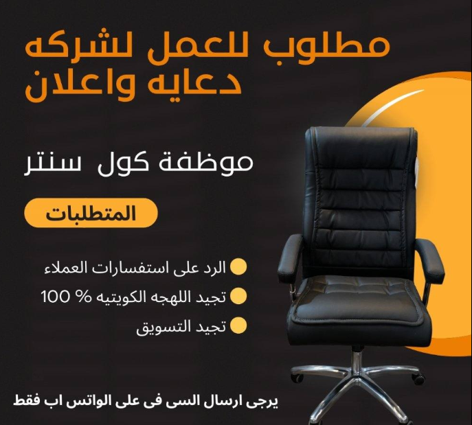 مطلوب للعمل موظفه كول سنتر لشركه دعاية وإعلان